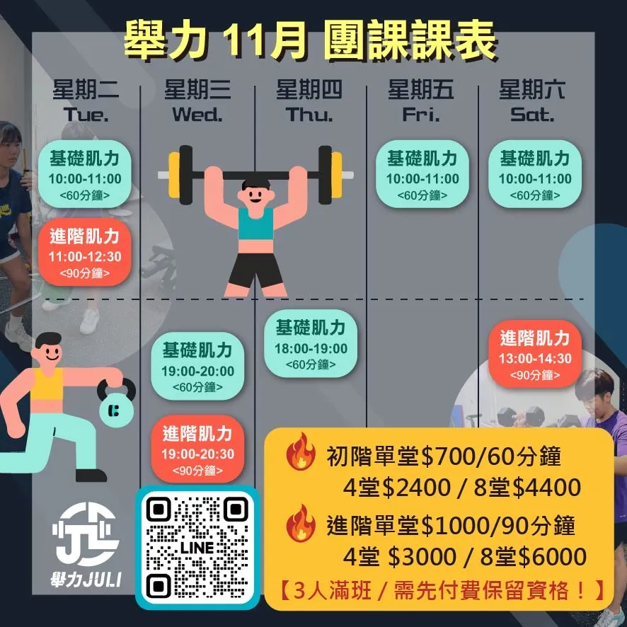 我們開團課啦!『11 月肌力團課開放報名中!』|台南團體肌力課程|永康區團體肌力課程